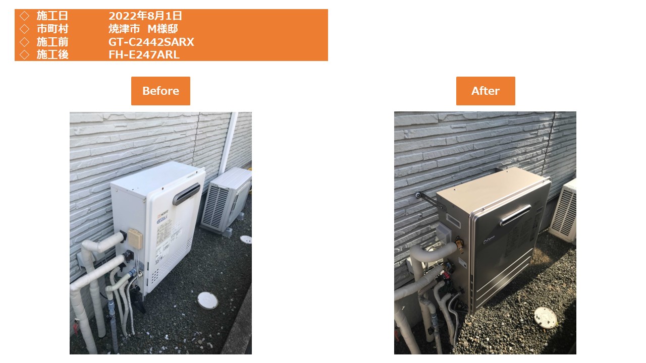本日は、焼津市での給湯器施工事例をアップさせて頂きます。