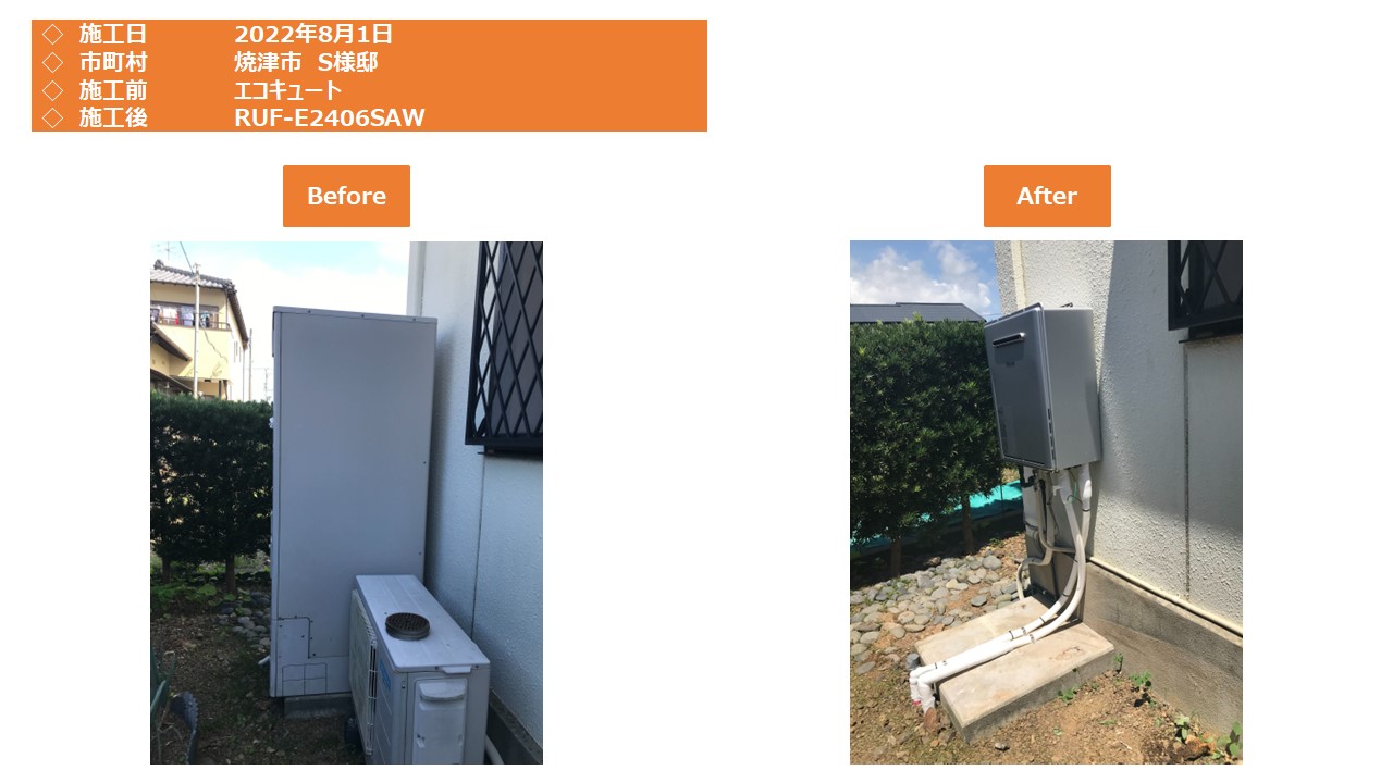 本日は、焼津市での給湯器施工事例をアップさせて頂きます。