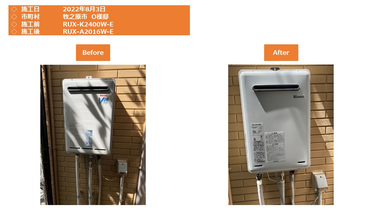 今回のお客様は、「RUX-K2400W-E」から、リンナイ「RUX-A2016W-E」への交換でした。