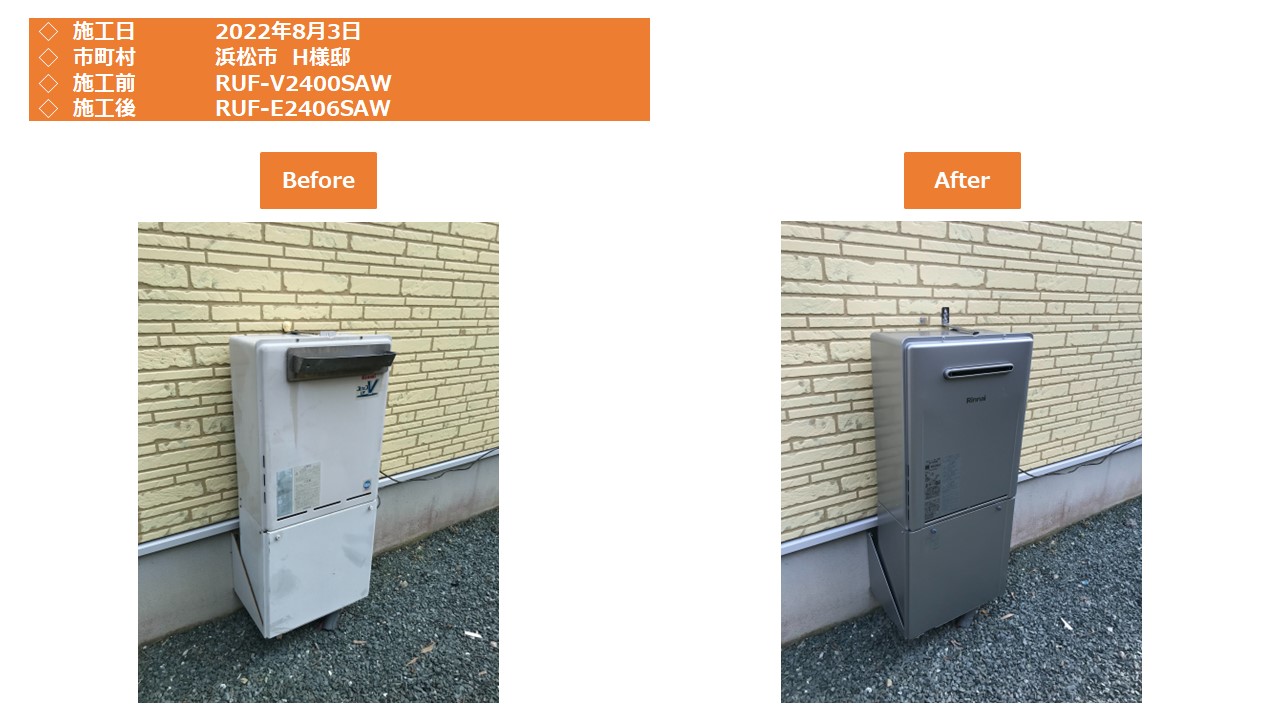 本日は、浜松市西区での給湯器施工事例をアップさせて頂きます。