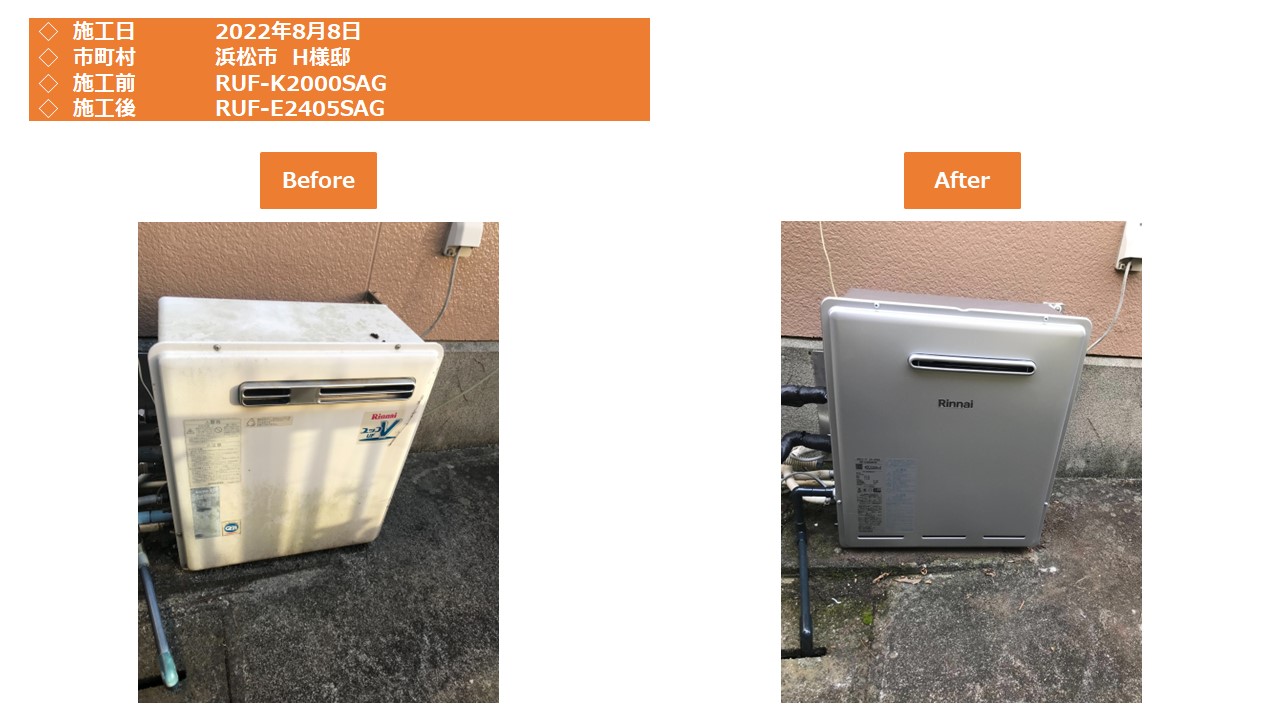 ガス風呂給湯機の取替工事 静岡県浜松市 RUF-E2405SAG の施工事例