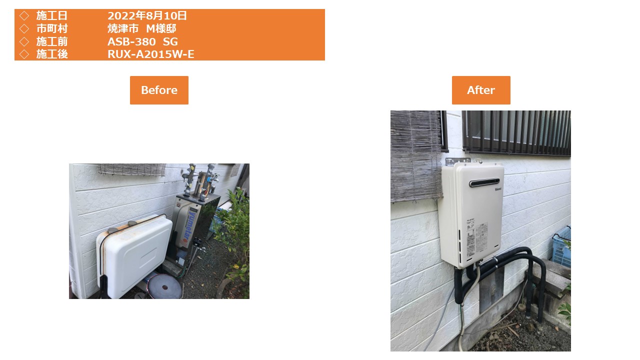 本日は、焼津市での給湯器施工事例をアップさせて頂きます。