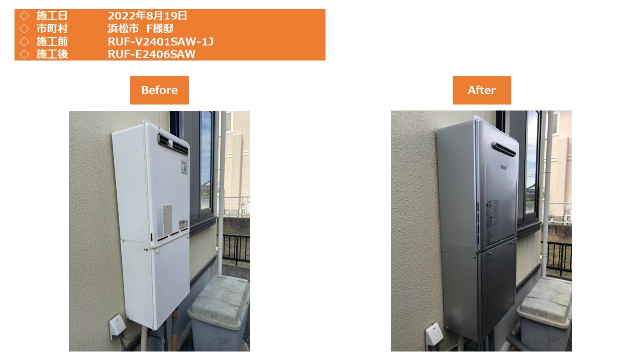 本日は、浜松市南区での給湯器施工事例をアップさせて頂きます。