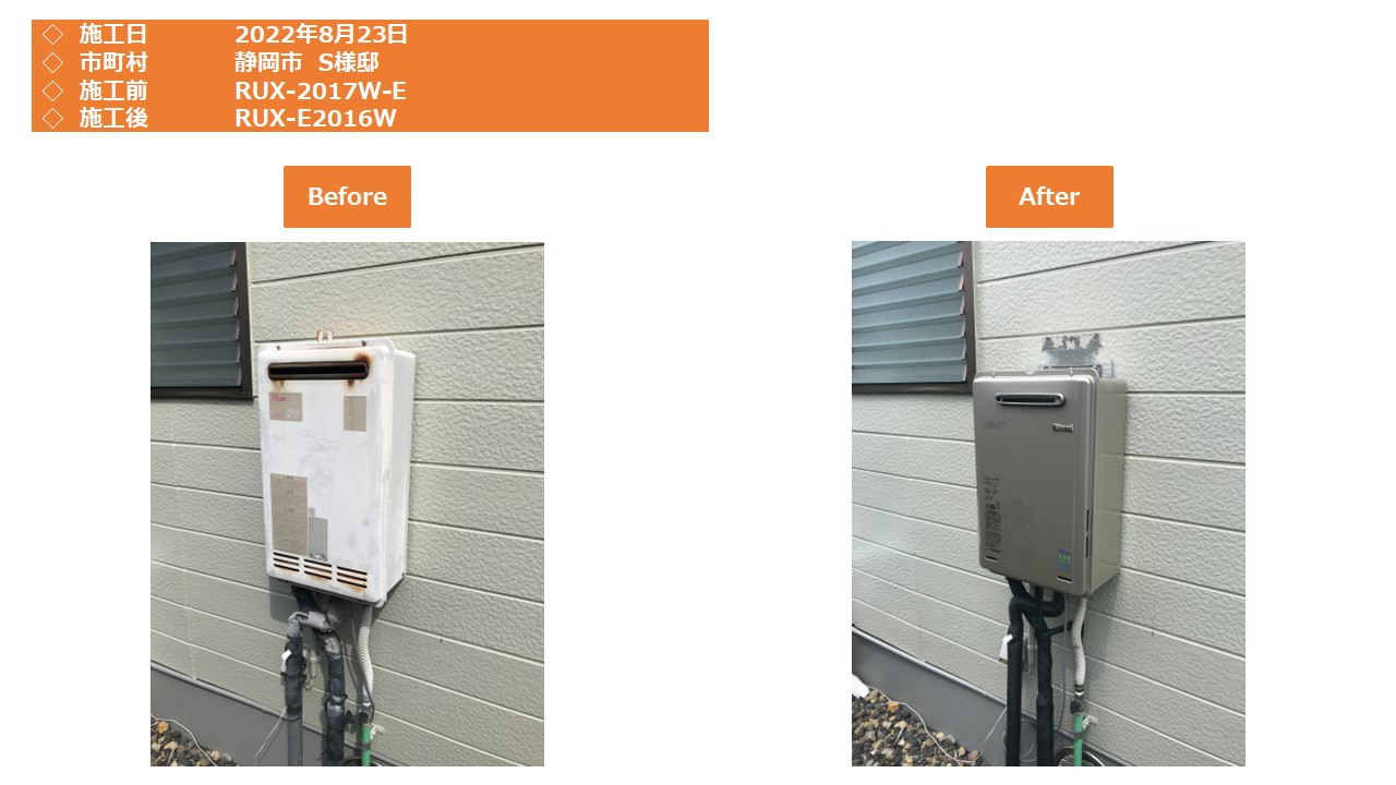 本日は、静岡市駿河区での給湯器施工事例をアップさせて頂きます。