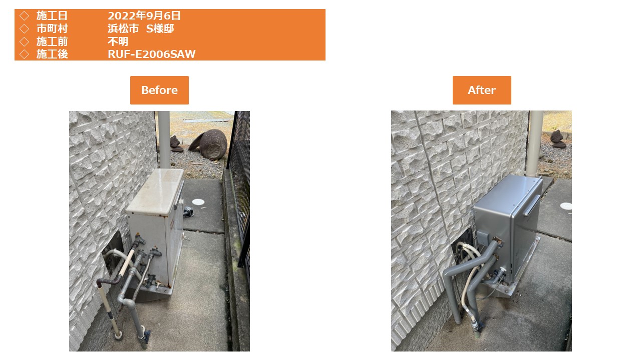 本日は、浜松市西区での給湯器施工事例をアップさせて頂きます。