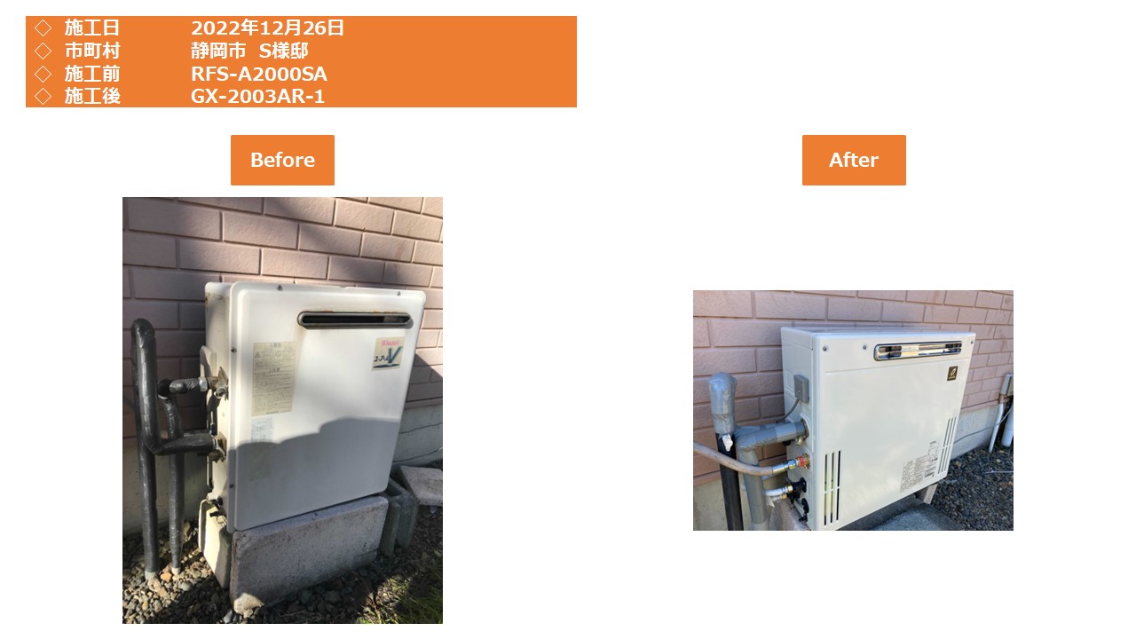 本日は、静岡市葵区での給湯器施工事例をアップさせて頂きます。