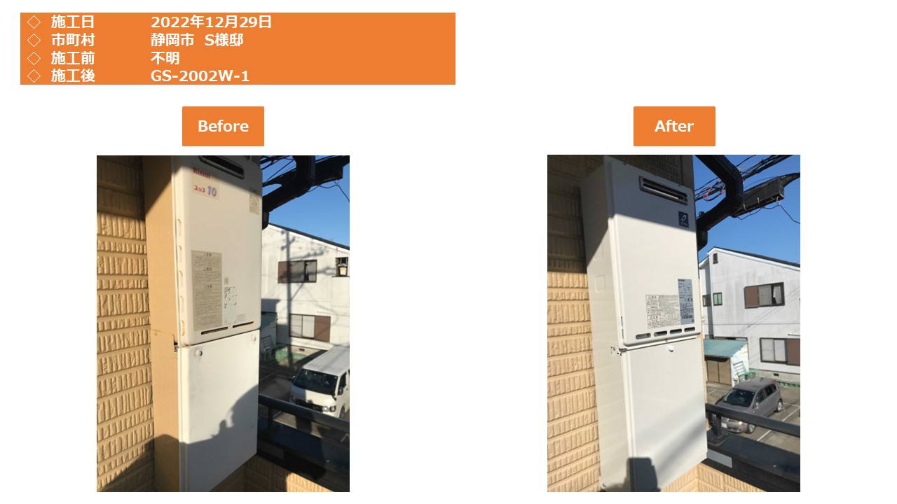 本日は、静岡市清水区での給湯器施工事例をアップさせて頂きます。