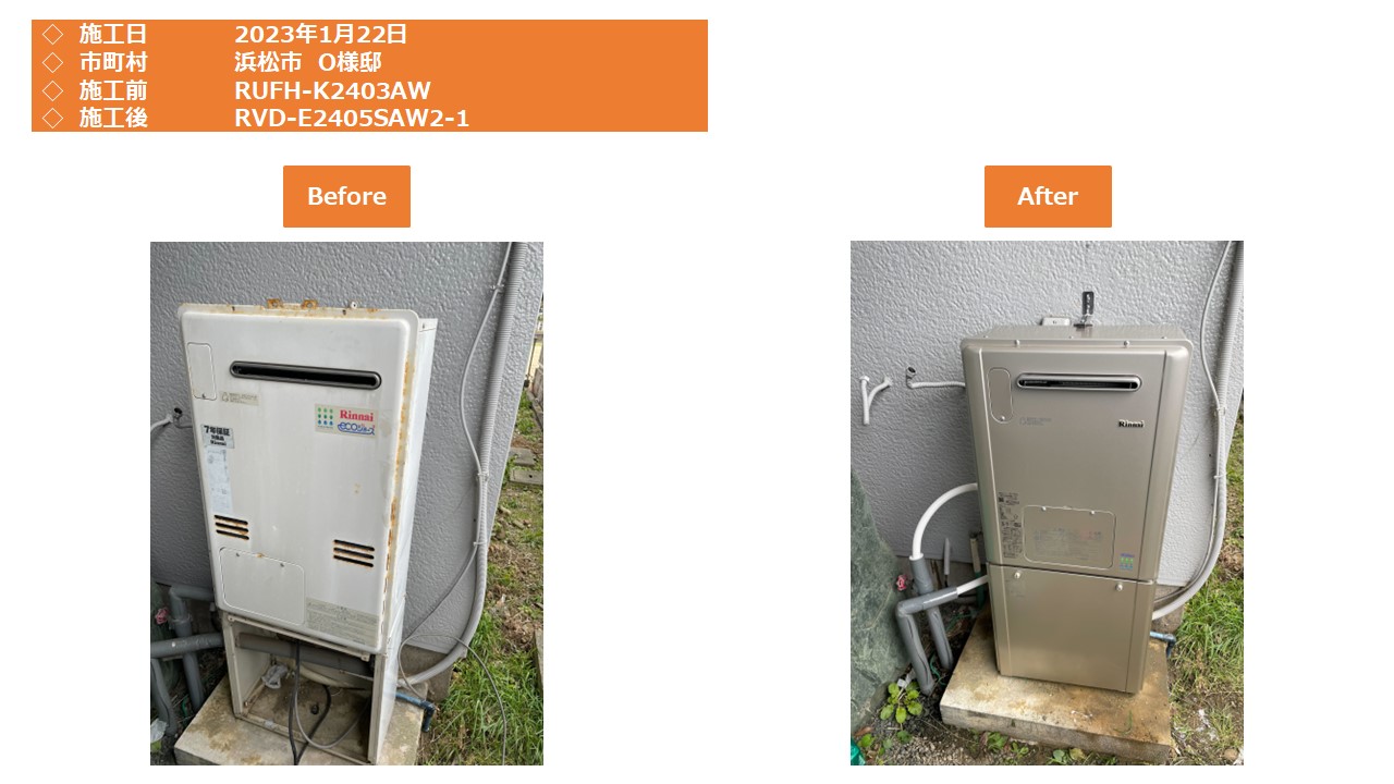 本日は、浜松市での給湯器施工事例をアップさせて頂きます。