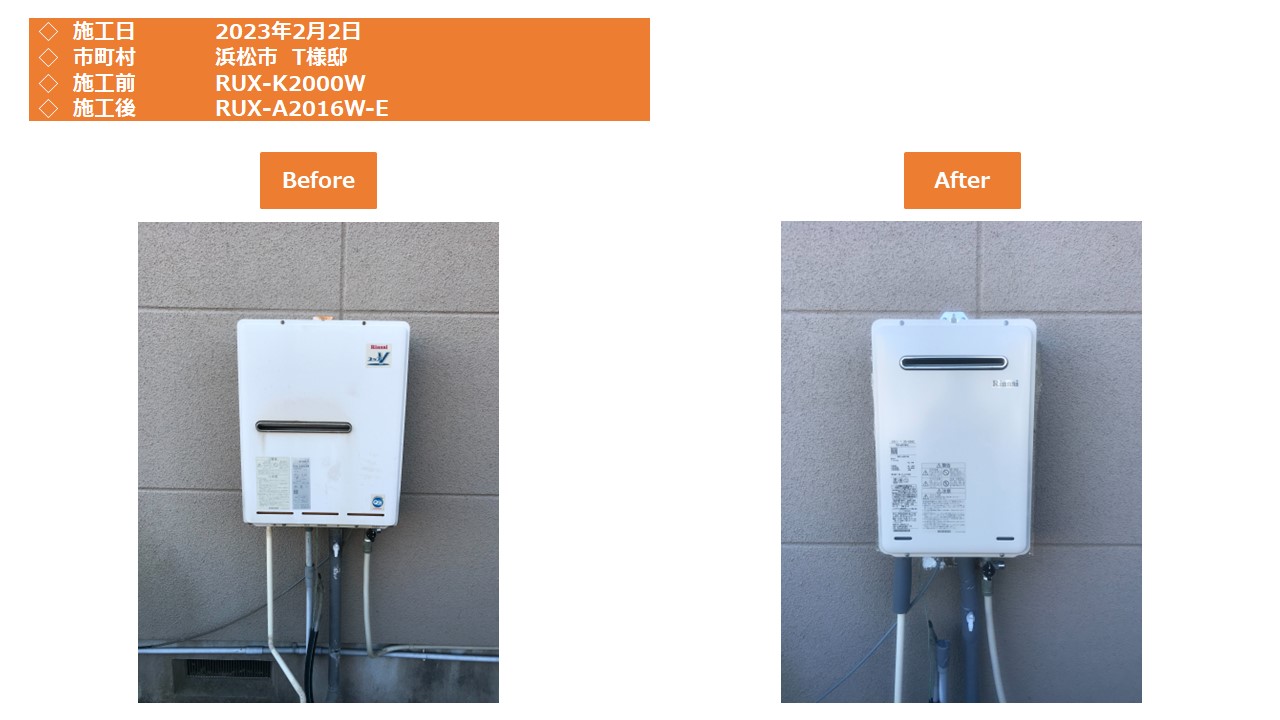 本日は、浜松市での給湯器施工事例をアップさせて頂きます。