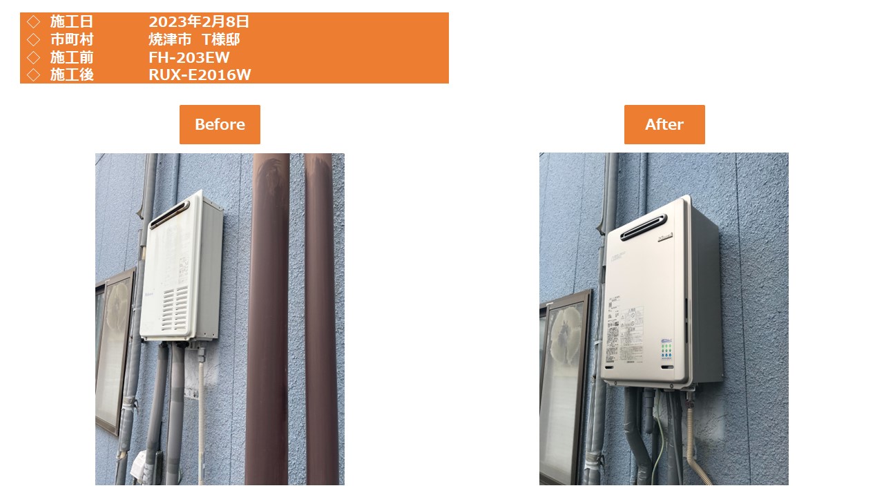 本日は、焼津市での給湯器施工事例をアップさせて頂きます。