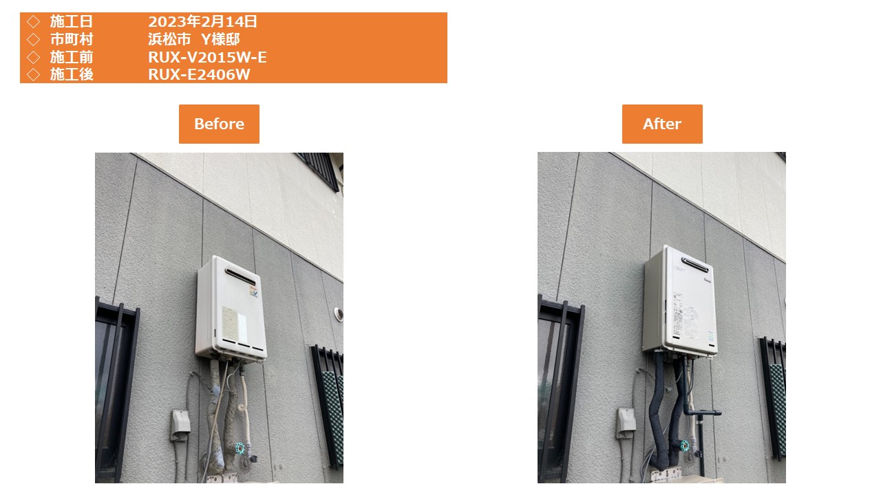 ガス風呂給湯機の取替工事 静岡県浜松市 RUX-E2406W の施工事例