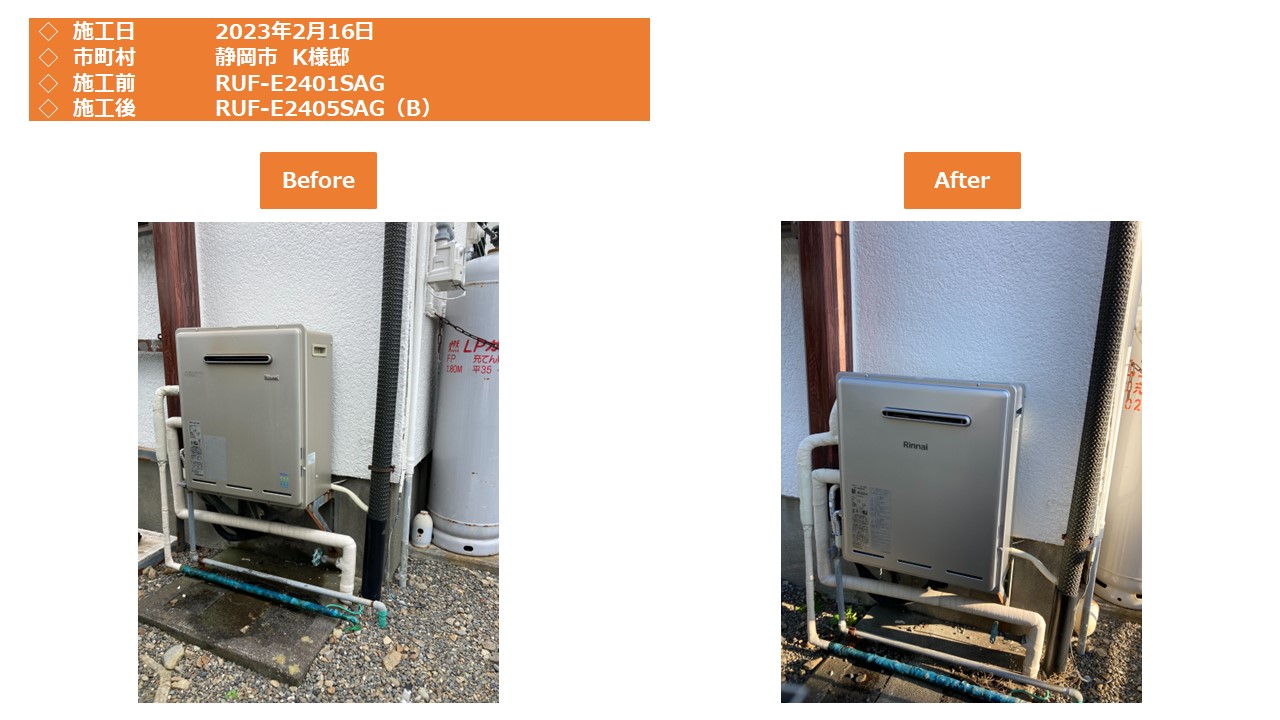本日は、静岡市葵区での給湯器施工事例をアップさせて頂きます。