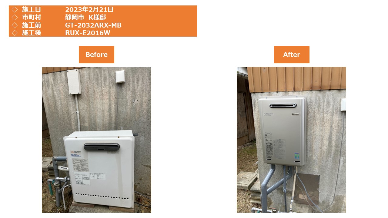 | 掛川の給湯器施工事例 | 島田の給湯器施工事例 | 菊川の給湯器施工事例 | 牧之原の給湯器施工事例 | 静岡の給湯器施工事例 |