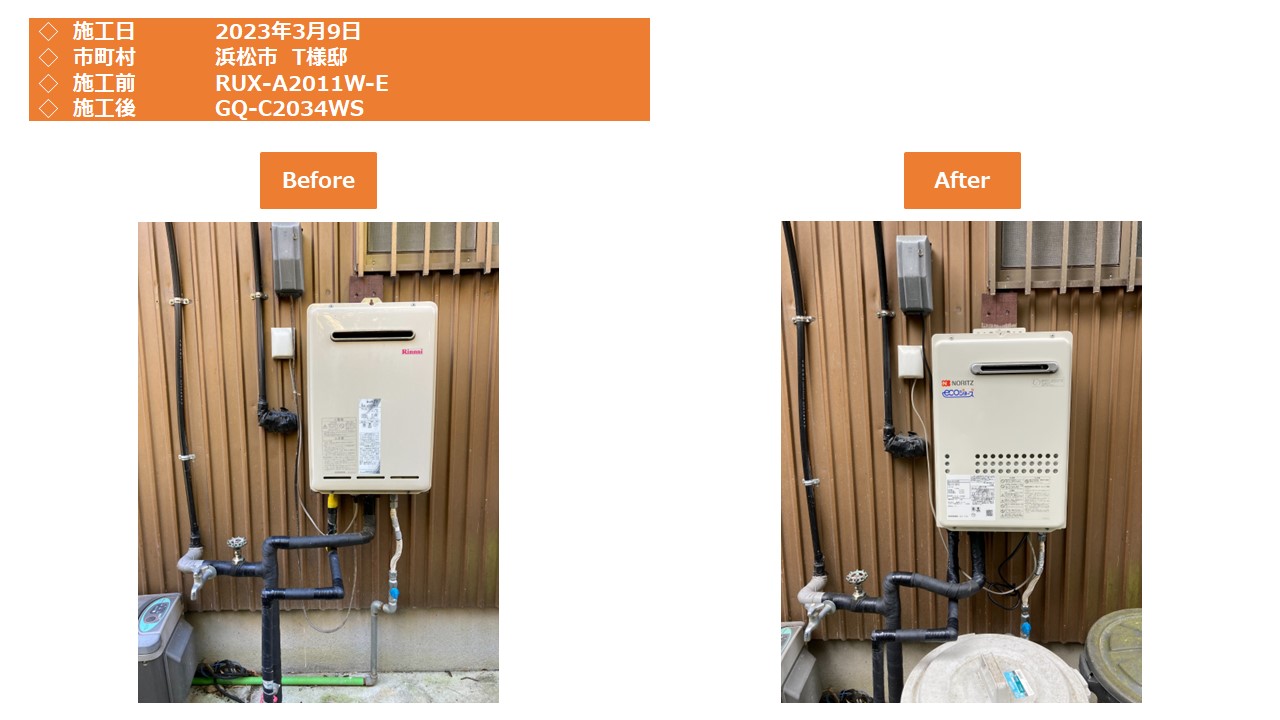 本日は、浜松市での給湯器施工事例をアップさせて頂きます。