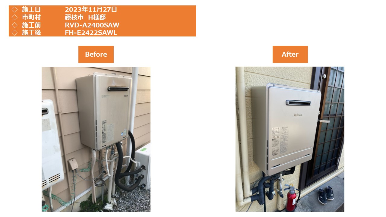 ガス風呂給湯器の取替工事 静岡県藤枝市 FH-E2422SAWL の施工事例