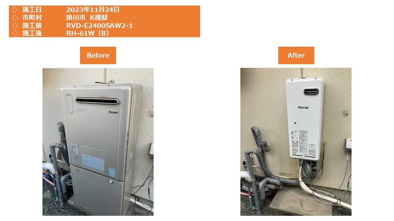 ガス風呂給湯器の取替工事 静岡県掛川市 RH-61W(B) の施工事例
