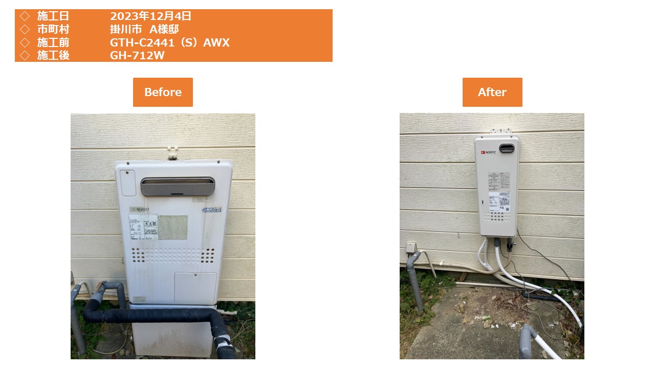 ガス風呂給湯器の取替工事 静岡県掛川市 GH-712W の施工事例