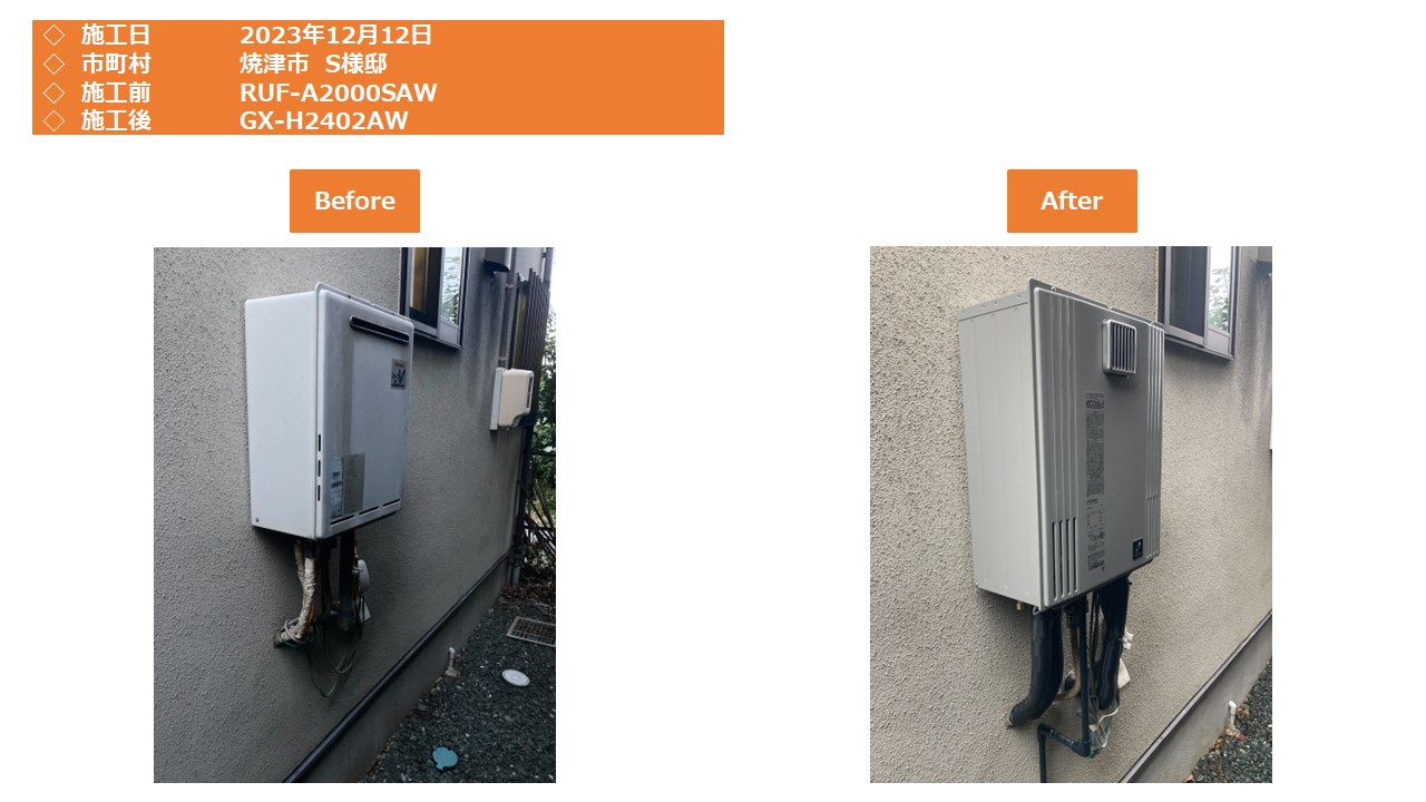 ガス風呂給湯器の取替工事 静岡県焼津市 GX-H2402AW の施工事例