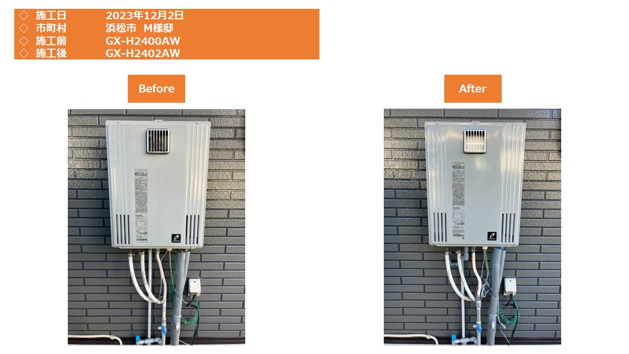 ガス風呂給湯器の取替工事 静岡県浜松市 GX-H2402AW の施工事例