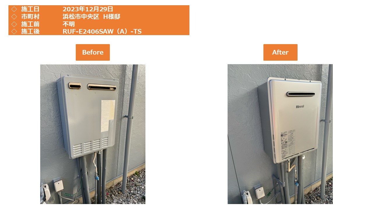 ガス風呂給湯器の取替工事 静岡県浜松市 RUF-E2406SAW(A)-TS の施工事例