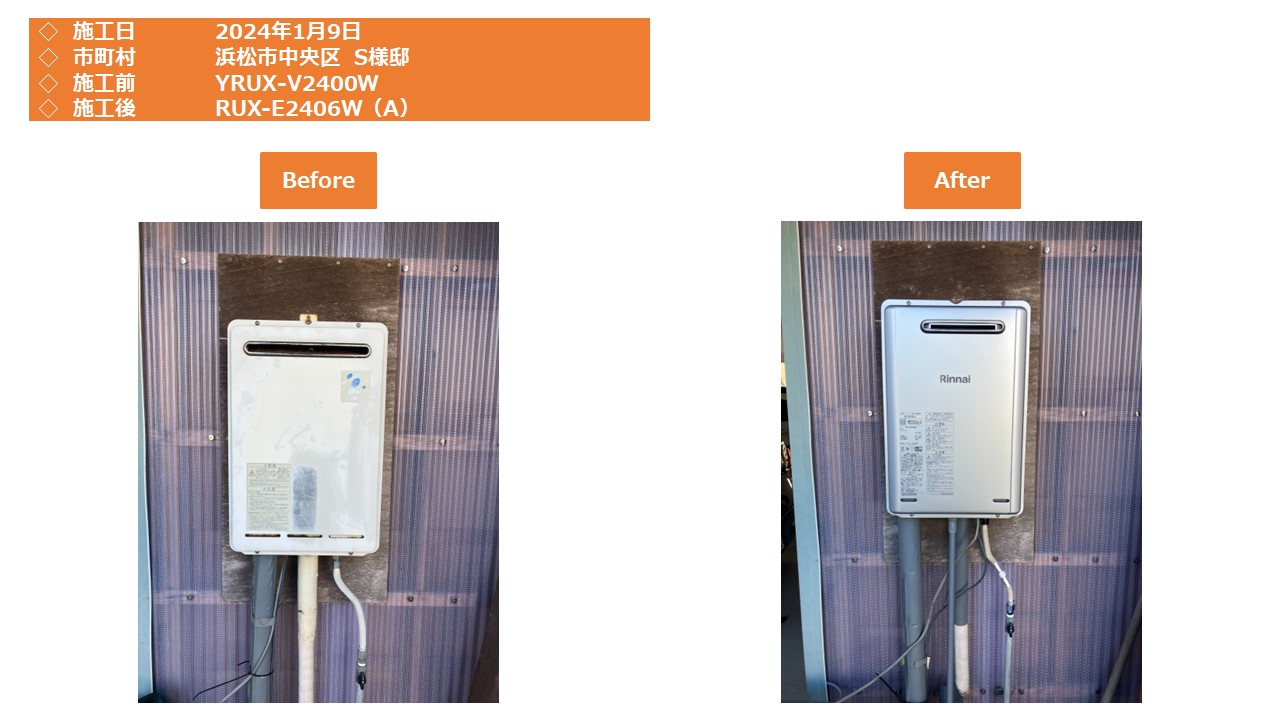ガス風呂給湯器の取替工事 静岡県浜松市 RUX-E2406W(A) の施工事例