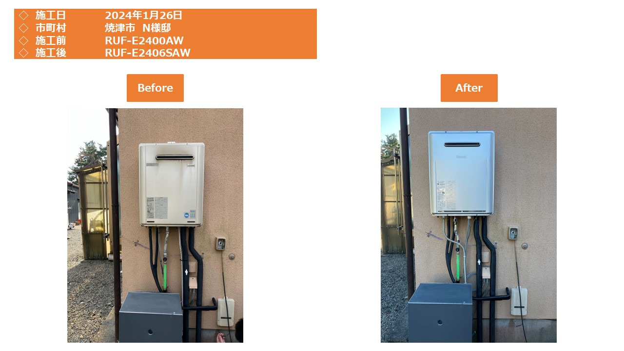 本日は、焼津市での給湯器施工事例をアップさせて頂きます。