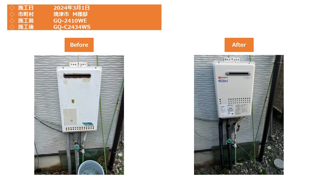 本日は、焼津市での給湯器施工事例をアップさせて頂きます。