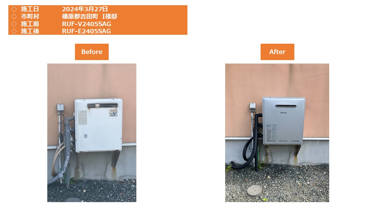 本日は、榛原郡吉田町での給湯器施工事例をアップさせて頂きます。