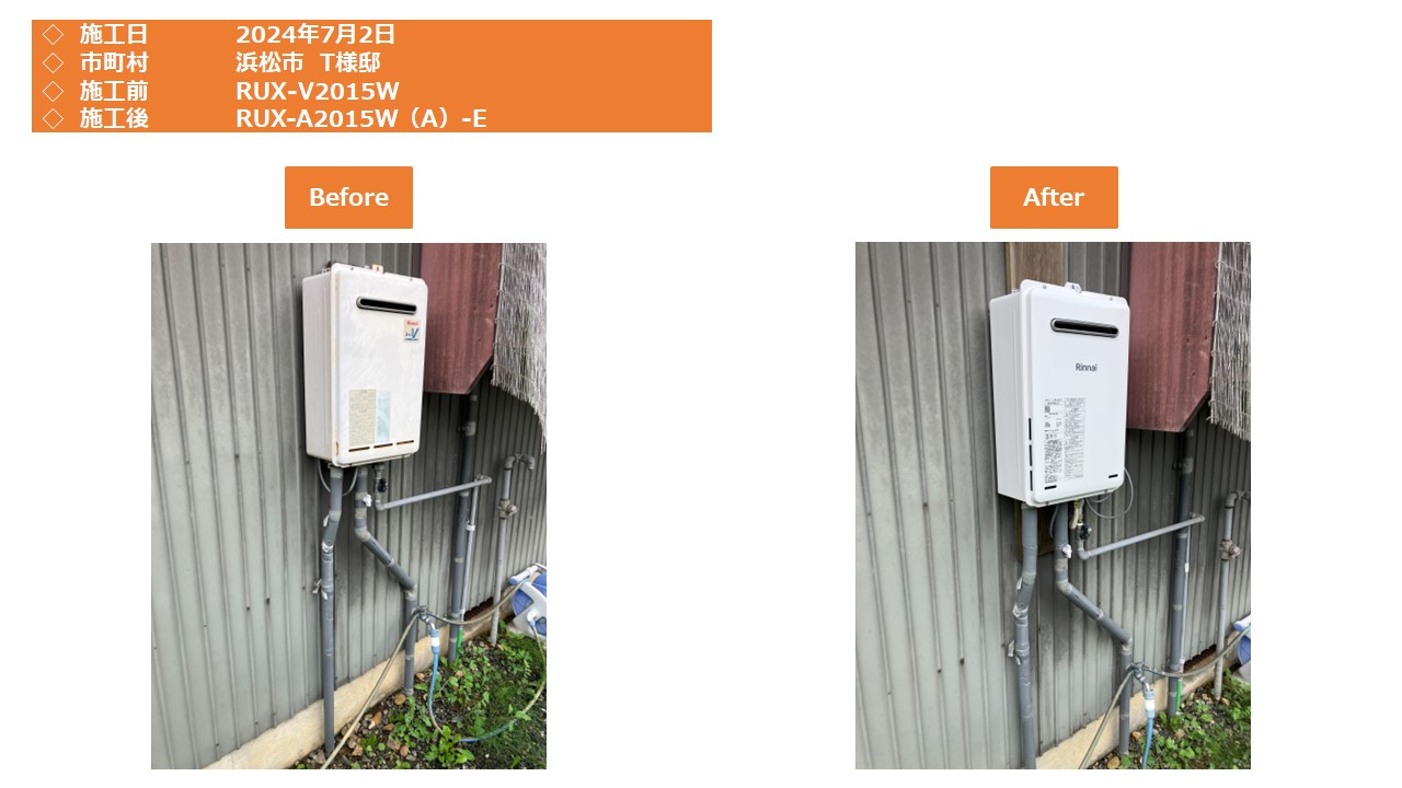 本日は、浜松市での給湯器施工事例をアップさせて頂きます。